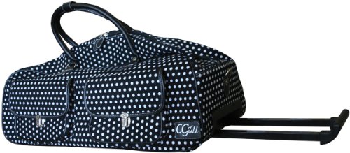 This quality canvas rolling tote was specifically designed to accommodate the Cricut Expression machine. It features a solid base, 2 Velcro straps to hold machine in place, 3 interior pockets for supplies, 2 exterior pockets, a retractable pull-behind handle, a removable shoulder strap, 2 exterior handles, and 2 rolling wheels for mobility. Tote measures approximately 24" wide by 11" high by 10-1/